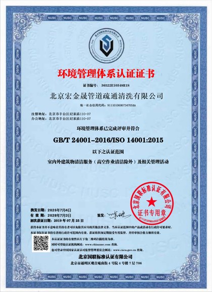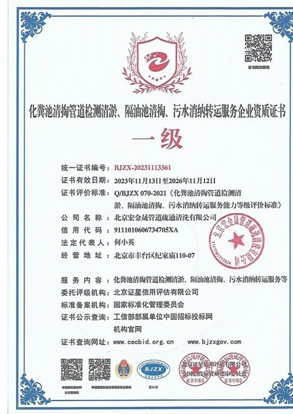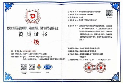 北京宏金晟管道疏通清洗有限公司成立于2013年04于12日,本公司是一家正规注册、实力雄厚、专业从事管道疏通清洗服务性公司,取得了国家一级服务资质。